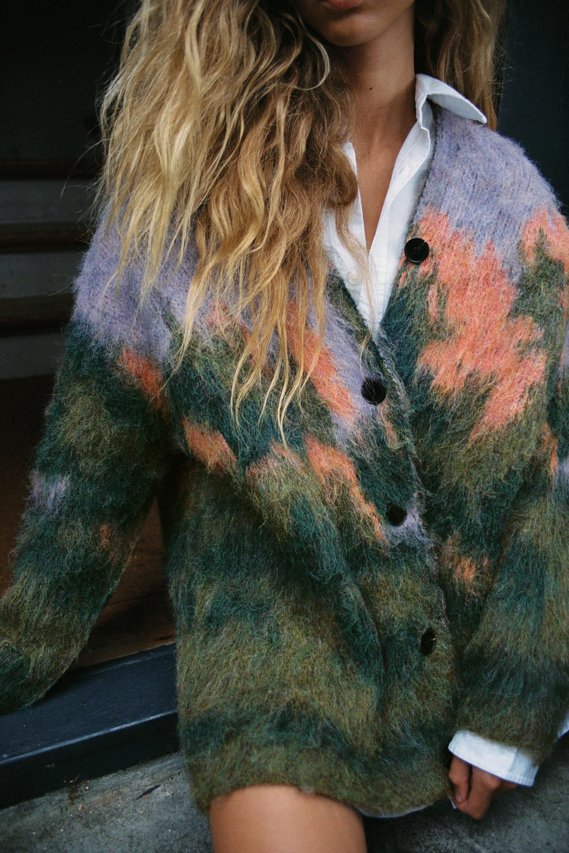 Landscape Knit Coat Multicoloured Zara United Kingdom