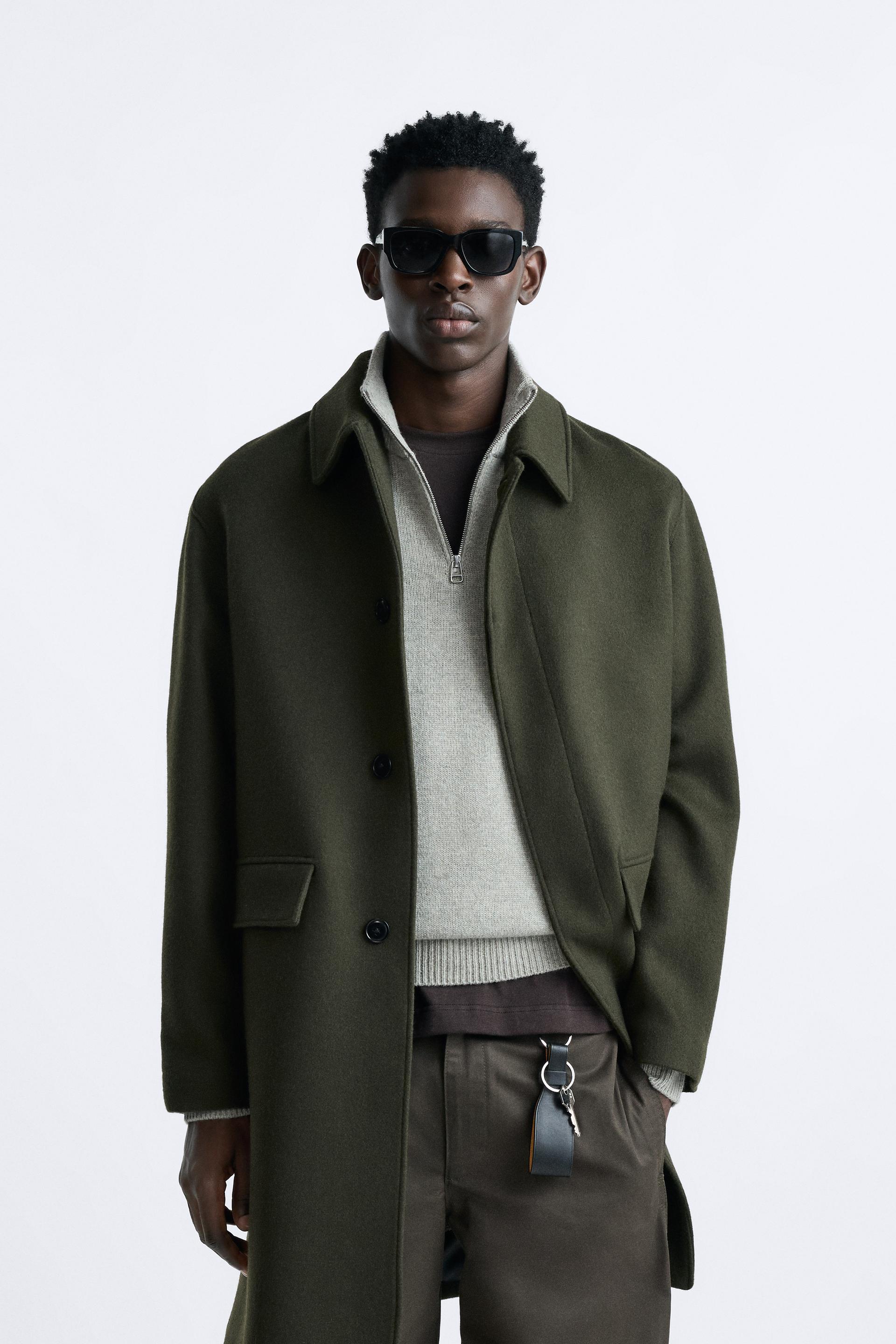 Wool Blend Coat Dark Khaki Zara United Kingdom